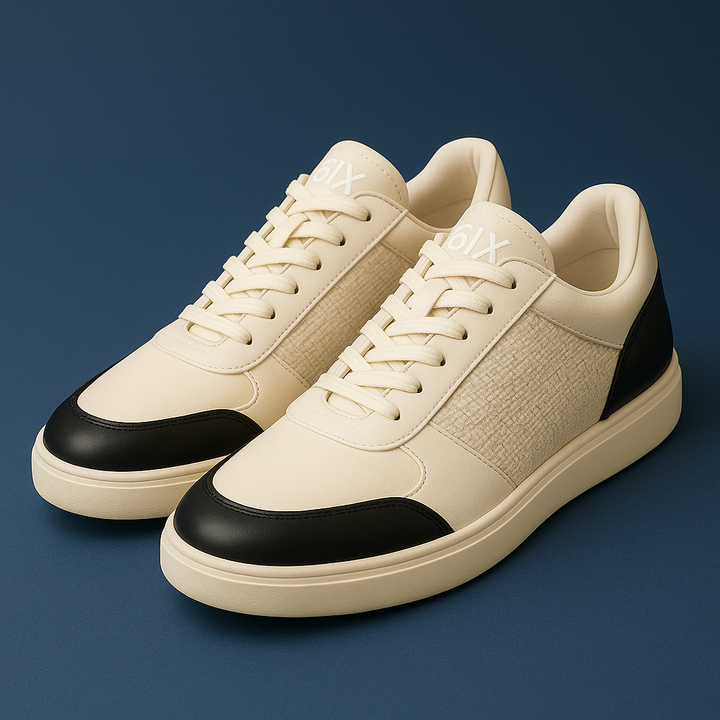 The black toe and heel cap contrast perfectly with the cream body, delivering a sleek two-tone aesthetic. The soft knit side panels provide breathable comfort, while the custom-stitched "6IX" branding on the tongue brings an unmistakable edge of identity. Whether paired with tailored chinos or distressed denim, the Westside Wave complements any look — from office-ready to off-duty cool.